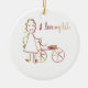 I love my bike ... a stick figure with her bike . Charming graphic design for her by Alma Wad .