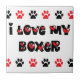 I love my Boxer! A bold black-white-and-red design featuring lots of hearts and dog paw prints. Great for any Boxer owner who loves their dog.
