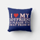Pillow for girlfriend, Declare your devotion with a dash of humour on Valentine's Day. " I Love My Boyfriend So Please Stay Away From Me" design. delivers a lighthearted message while celebrating love.