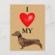 I Love My Dachshund Red Heart Postcard