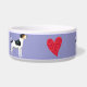 I love this bowl. It's nice and heavy and feels well made. I think Zazzle could make it even better however. This large bowl is actually on the small side for a large dog. I'd love to see one size larger. Also, if you want a colored background, there will be a rather thick strip of white on the top and the bottom. I wish I could have the entire face of the bowl printed in a color. The printing is crisp and clear and does a good job of showing off my Create With Photos running Portuguese Water Dog design.