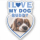 I love my Dog Blue Heart Photo Pet Name Sticker. A photo in a shape of a heart. Add your photo and name.