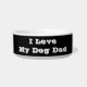 Pet Bowl food and water container with Black Background Colour and White Lettering Colour printed with customisable template text phrase I love My Dog Dad on Hats, Shirts and Pet Products by TheFabricSeal print on demand shop at Zazzle.com #ZazzleMade https://www.zazzle.com/store/thefabricseal