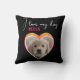 I love my Dog Heart Pet Photo Name Black Throw Pillow. A photo in a shape of a heart and a text in trendy script. Add your photo and name.
