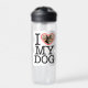 Add your dog's photo to this "I love my dog" photo water bottle.
