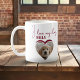 I love my Dog Red Heart Photo Pet Name Coffee Mug. A photo in a shape of a heart and a text in trendy script. Add your photo and name.