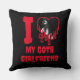 This gothic throw pillow says 'I Love My Goth Girlfriend' in a red horror font - you can edit the text as needed. Also has a red dripping silhouette of a bloody heart with a photograph template, which you can replace with a photo of your goth girlfriend.