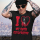 Show your love with this gothic slogan t-shirt design by JessicaAmber. Says 'I Love My Goth Girlfriend' in a dripping horror font - you can edit the text as needed. Also has a bold red silhouette of an oozing heart with a photograph inside. You can replace it with a photo of your goth girlfriend or wife.