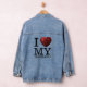 I love my husband, custom text, red heart sparkles Denim Jacket. Surprise your wife with a heartfelt Valentine's Day gift custom Jacket "I love my husband, with a symbolic heart. This personal and thoughtful gesture to show your love with a cherished couples' keepsake. We use photo of Red sparkles, not actual glitter!