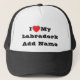 Custom Trucker Style Baseball Hat In Black and White Colour and Black Text Colour and casual fun fashion statement accessory printed with customisable template text phrase I ❤️ Love My Labradork Add Name on Hats, Shirts and Pet Products by TheFabricSeal print on demand shop at Zazzle.com #ZazzleMade https://www.zazzle.com/store/thefabricseal