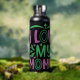 I ordered a custom water bottle and the design came out better than I thought. I like how the water bottle has a gloss finish and feels slick. The letters and numbers on it have an outline you can feel and that’s my favorite part. It doesn’t smell like metal on the inside! That’s what I was scared of. Beautiful work. Will definitely order more in the future. Thank you!