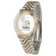 The watch is very nice, the picture is great and the watch looks like quality. The only problem I am having with it is that it is a little too large, and I also can't figure out how to open the clasp. No directions came with it. Very good. The printing is perfect and the watch keeps good time.