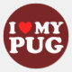 I Love My Pug With Red Heart Classic Round Sticker