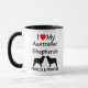 This custom "I Love My Two Australian Shepherds" mug is perfect for anyone who owns two Australian Shepherd dogs, just add your own dog names.