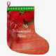 Mum's own Christmas stocking. Pretty red poinsettia flowers with green trim, "I Love My Wonderful Mum" custom-made Christmas stocking just for Mum.
