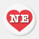 This magnet features a vibrant red heart containing the bold, white, upper case letters NE, the official abbreviation for Nebraska, the cornhusker state.