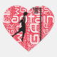Customizable red heart shaped sticky label. Word cloud design, love netball stickers. Ideal for labeling gifts, mason jars, books or craft projects