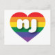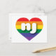 This postcard features a heart with a rainbow pride design and the bold, white, lower case letters nj, a playful abbreviation for New Jersey, the garden state. The reverse side of the postcard is blank, awaiting your personalised text or handwritten sentiments. Show your true colours, support marriage equality, and celebrate gay pride.