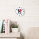 The clock did not take as long to arrive as I thought it might and was extremely well packaged. I didn't do the measurements so I didn't realize it is a little smaller than the average clock but that does not matter (just make sure you check if that's important to you).It is really nifty! It seems very solid and well made not flimsy at all. It has been going well and has kept good time in its few weeks on my wall. Nice product. Gets noticed too! Nicer in real life than the picture but true to the picture