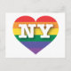 This postcard features a rainbow heart containing the bold, white capital letters NY, the official abbreviation for New York, the empire state. The reverse side of the postcard is blank, awaiting your handwritten sentiments or customised text. Show your true colours, support marriage equality, and celebrate gay pride.