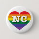 This button features a heart with a rainbow pride design and the letters NC. Atop the stripes, within the heart, are the bold, white, capital letters NC, the official abbreviation for the state of North Carolina, the tar heel state. Show your true colours, support marriage equality, and celebrate gay pride.