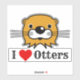 Cute otter illustration. Large sticker which says I Love Otters. Otter's Head illustration motif. For otter lovers. Wildlife and conservation.