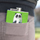Well made flask, a little better than I had expected. Flask came in clear plastic box which gave it a nice presentation when I took it out of the zazzle packaging. Image is not printed on flask but on sticker. Don't know how this will hold up I haven't used it yet. This would make a Great gift! I plan to purchase more for friends! Cheers. I thought a little brighter than computer. Very crisp, writing wasn't