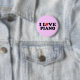Pretty pink music button with I Love Piano slogan in red heart style. Great button for accompanists or piano music lovers.