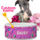I absolutely love this product! I was a little concerned prior to buying it, but I was blown away by the quality of the item. The bowl is sturdy and arrived clean without any damage. The printing was crisp and clean and looks Better than I hoped! My dogs immediately knew these were for them and get very excited to pose with their new bowls! Definitely recommend and will purchase more in the future! The printing is crisp and well done. It looks absolutely beautiful on the bowl, and I can tell that it’s going to hold up well over time.