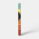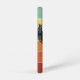 The background showcases a striking blend of vintage sunset colours, transitioning from soft aqua to vibrant yellow, warm orange, and deep brown tones. Narrow white stripes add contrast, enhancing the classic retro aesthetic.