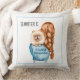 Throw pillow for dogs lovers, featuring a young girl holding a cute, shy puppy in her jeans jacket showing "I love Pomeranian" text.