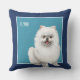 You may personalise the pillow by editing the name on the front of the pillow, just click on the Personalise button. The back side has a cute white Pomeranian on blue square and custom text.