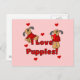 Two cute brown dogs dressed in red sweaters, red hearts, and red text that reads "I Love Puppies!" is featured on puppy dog t-shirts, mugs, tote bags, stickers, keychains, and more.
