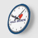 The clock did not take as long to arrive as I thought it might and was extremely well packaged. I didn't do the measurements so I didn't realize it is a little smaller than the average clock but that does not matter (just make sure you check if that's important to you).It is really nifty! It seems very solid and well made not flimsy at all. It has been going well and has kept good time in its few weeks on my wall. Nice product. Gets noticed too! Nicer in real life than the picture but true to the picture