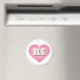 This magnet features a pink heart with a white-washed center containing the bold, white, capital letters, RI, the official abbreviation for Rhode Island, the ocean state.