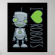 Vector cartoon illustration of a cute and happy little robot with I Love Robots text. Keywords: robot, droid, android, machine, future, happy, friendly, cute, humour, cartoon, love, adorable, adorbs, silly