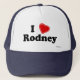 I love Rodney! Is your name Rodney? Do you have a wife, girlfriend, female family member or female friend who you know loves you? Or do you have a husband, boyfriend, male family member or male friend named Rodney whom you love deeply? If so, this "I Love" hat is exactly the gift that you're looking for! The design features the letter "I" in black lettering with a red heart on the top and "Rodney" in black lettering on the bottom.