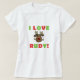 Christmas reindeer design clothing including holiday T-shirts, holiday sweatshirts, tote bags, magnets, cards, stickers, and more featuring Rudy the reindeer!