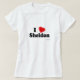 I love Sheldon! Is your name Sheldon? Do you have a wife, girlfriend, female family member or female friend who you know loves you? Or do you have a husband, boyfriend, male family member or male friend named Sheldon whom you love deeply? If so, this "I Love" shirt is exactly the gift that you're looking for! The design features the letter "I" in black lettering with a red heart on the top and "Sheldon" in black lettering on the bottom.