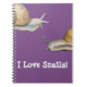 I Love Snails Snail Design with two Helix snails on a light tan/ brown background. Writing says 'I love snails' Perfect gift for someone with pet snails
