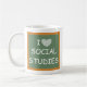 This product displays a picture of a chalkboard with "I [heart] SOCIAL STUDIES" in white font. This product is a great gift for social studies teachers or enthusiasts.