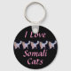 Handy keychain proclaims your love of Somali cats in pink text against a black background.