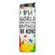 Fun tumbler for Autism with puzzle pieces that on one side says I love someone with autism and the other side says in a world you can be anything be kind.