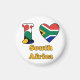Ik hou van Zuid Afrika magneet. Tekst: I heart South Africa. Het hart is de Zuid Afrikaanse vlag.