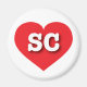 This magnet features a vibrant red heart containing the bold, white, upper case letters SC, the official abbreviation for South Carolina, the palmetto state.