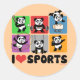 These six cute pandas are playing lots of different sports. There's a baseball panda, weightlifting panda, pommel horse panda, rhythmic gymnastics panda, rings panda and shot put panda. This makes a perfect gift for sports fanatics. Great for everyone who loves cute pandas and sport.