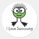 I Love Swimming - Green CharacterStickers Classic Round Sticker