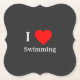 I love Swimming Typography & Red Heart Dark Grey Paper Coaster