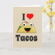 Brighten someone's day with this fun I Heart Tacos card. The recipient is sure to smile at this cute cartoon taco! Tacos -- yum!