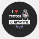 I Love Tattoos And My Pittie Dog Pitbull Mum Dad B Classic Round Sticker
